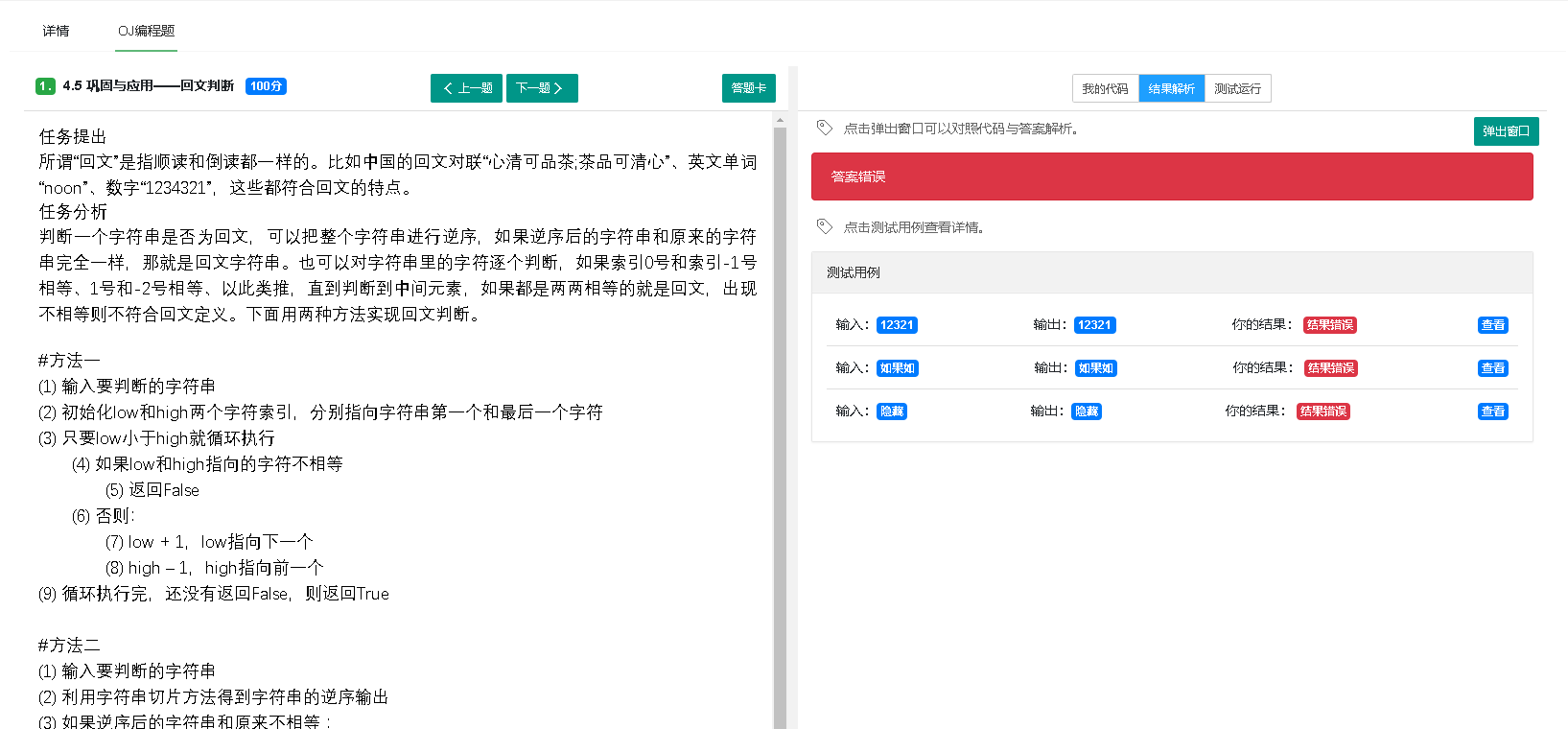 二、弹出窗口 - 可以弹出作答界面,方便对照代码检查错误。